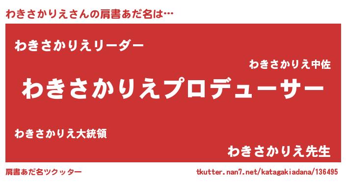 | ポケモン風あだ名 | 『ワキゴンZ』『ヒワキサカリエ』 |