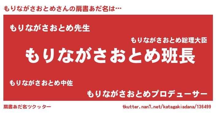 | ヘコむあだ名 | 『もり太郎』『もりながさおとめ(小並感)』 |