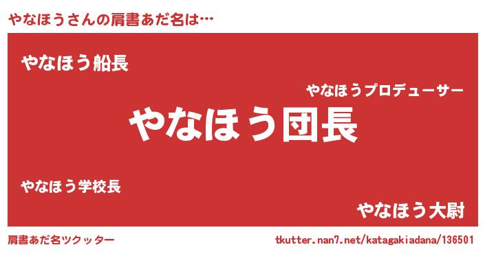 | ヒーロー風カッコイイあだ名 | 『暗黒騎士ヤナ』『愛の使者やなほう』 |
