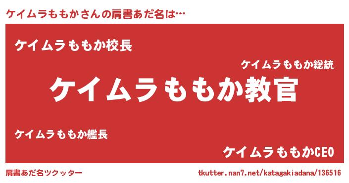 | ヘコむあだ名 | 『ケイムラももか(笑)』『ケイにゅー』 |