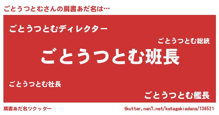 | 意味不明あだ名 | 『とにかく怪しいごとうつとむ』 |