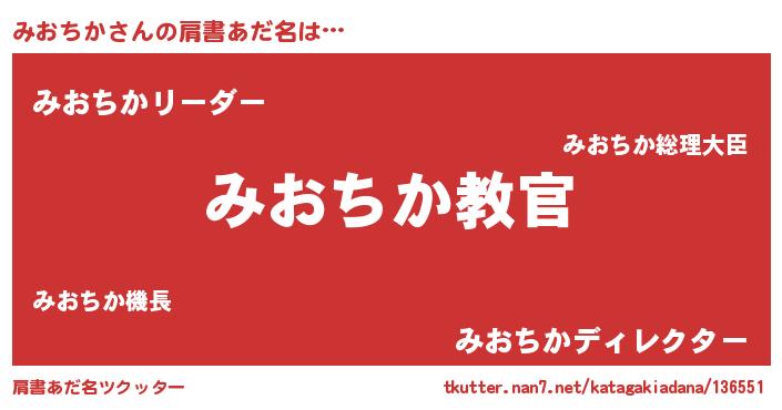 | 男性向けラノベタイトル風あだ名 | 『この素晴らしい世界にみおちかを!』 |