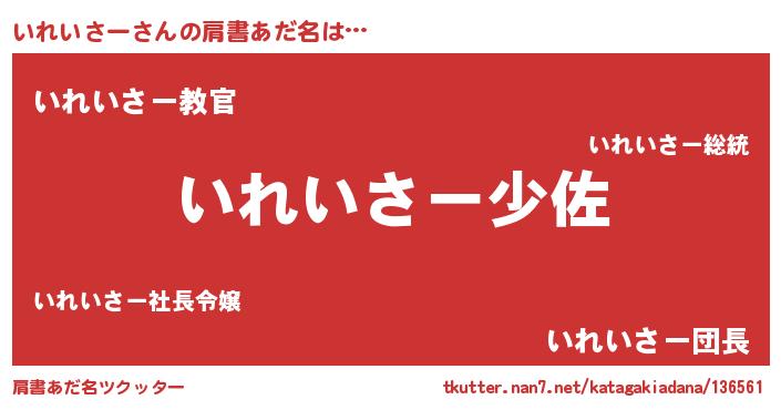 | 男性向けラノベタイトル風あだ名 | 『いれいさー~年齢イコール彼女いない歴の魔法使い~』 |