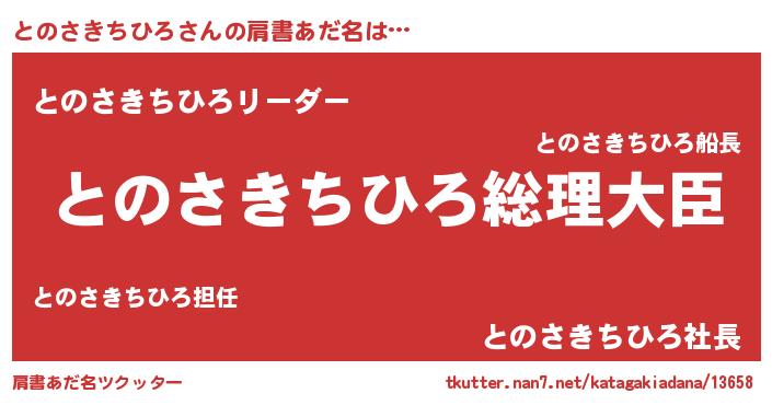 | ポケモン風あだ名 | 『トノサダネ』『ヒトノサキチヒロ』 |
