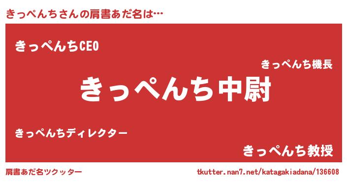 | 男性向けラノベタイトル風あだ名 | 『キッペンチスレイヤー』 |