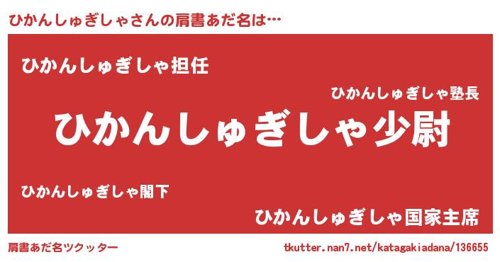 | 男性向けラノベタイトル風あだ名 | 『転生したらひかんしゅぎしゃだった件』 |