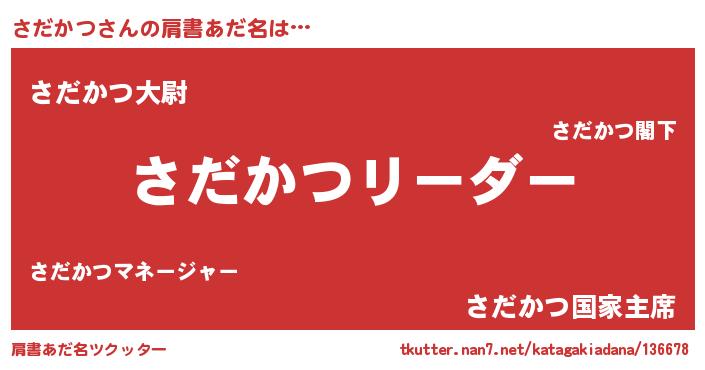 | 男性向けラノベタイトル風あだ名 | 『さだかつの嫁は女の子じゃないと思った?』 |