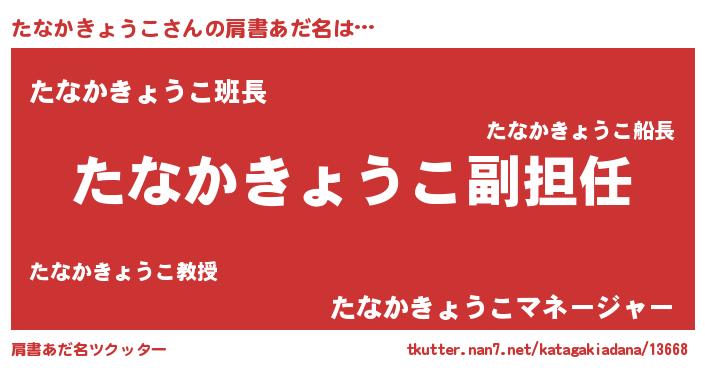 | 男性向けラノベタイトル風あだ名 | 『たなかきょうこという概念が存在しない退屈な世界 』 |