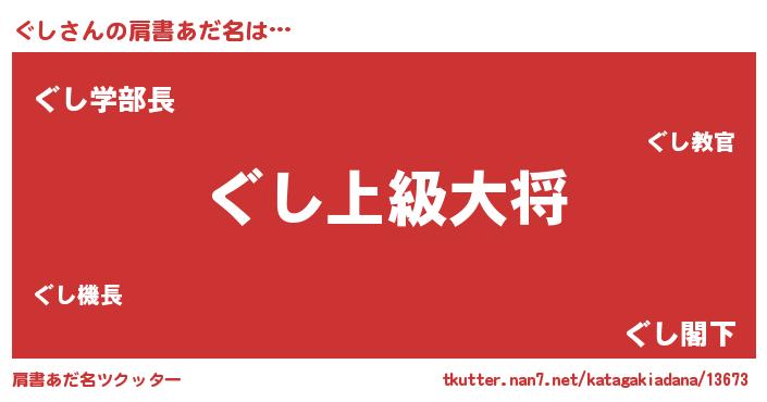| ヘコむあだ名 | 『ぐしぷりん』『ぐし(遠い目)』 |