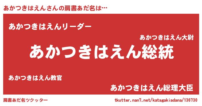 | 男性向けラノベタイトル風あだ名 | 『Re:あかつきはえんから始める異世界生活』 |
