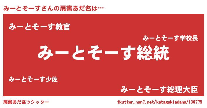 | 意味不明あだ名 | 『自称みーとそーす』 |