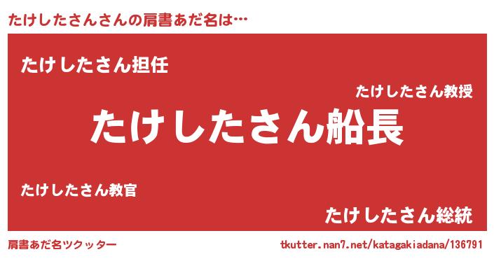 | ヒーロー風カッコイイあだ名 | 『ネオタケシタサン』『仮面タケダー』 |