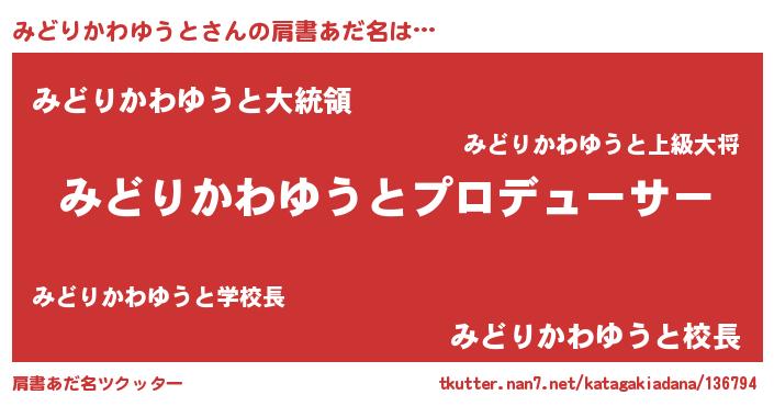| ファンタジー風あだ名 | 『エターナルミドリカワユウトー』 |