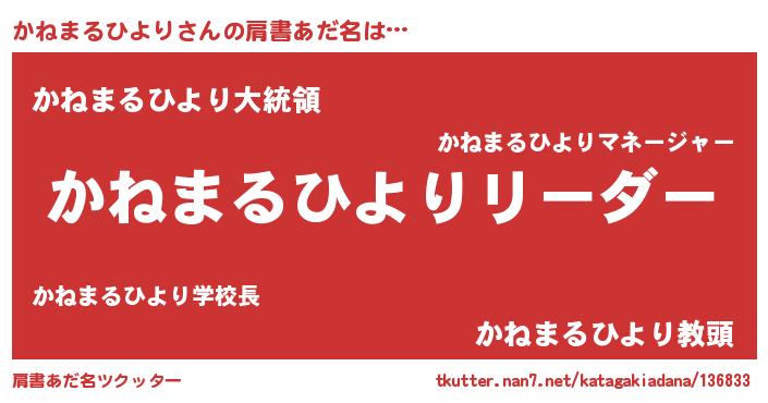 | 男性向けラノベタイトル風あだ名 | 『かねまるひよりの嫁は女の子じゃないと思った?』 |