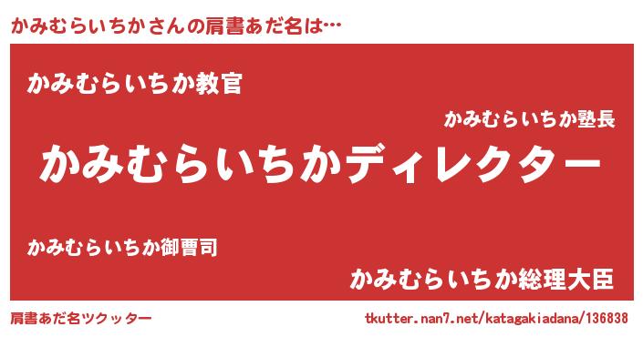 | 男性向けラノベタイトル風あだ名 | 『かみむらいちかに滅ぼされるだけの簡単なお仕事です』 |