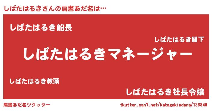 | ヒーロー風カッコイイあだ名 | 『スーパーシバタハルキ』『暗黒騎士シバ』 |