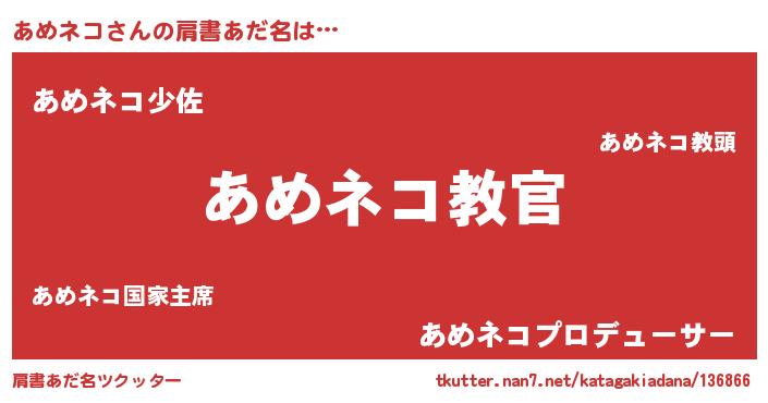 | ヒーロー風カッコイイあだ名 | 『仮面アメダー』『ネオアメネコ』 |