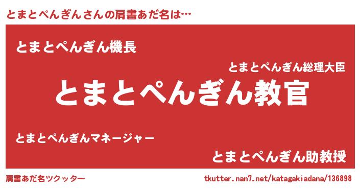 | 意味不明あだ名 | 『住所不定無職とまとぺんぎん(77歳)』 |