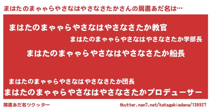 | 欧米人風あだ名 | 『まはたのまゃゃらやさなはやさなさたか・ステッグマイヤー』 |