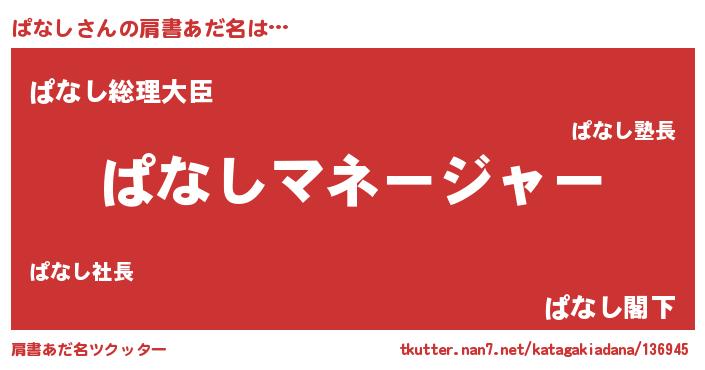 | 男性向けラノベタイトル風あだ名 | 『はたらくぱなしさま!』『ぱなしの憂鬱』 |