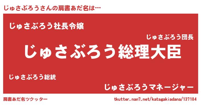 | 女子向けラノベタイトル風あだ名 | 『じゅさぶろうの雑貨屋さん』 |