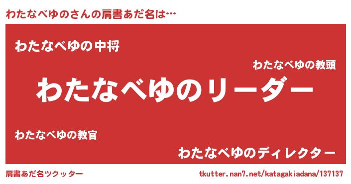 | ヒーロー風カッコイイあだ名 | 『黄金騎士ワタ』『ネオワタナベユノ』 |