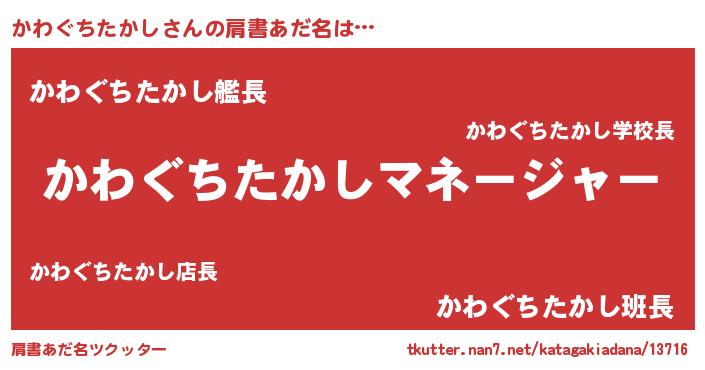 | 意味不明あだ名 | 『とにかく怪しいかわぐちたかし』 |