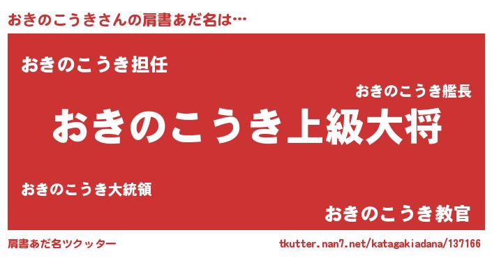 | 男性向けラノベタイトル風あだ名 | 『おきのこうき~年齢イコール彼女いない歴の魔法使い~』 |