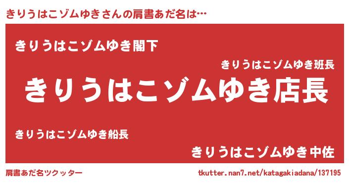 | ヒーロー風カッコイイあだ名 | 『スーパーキリウハコゾムユキ』 |
