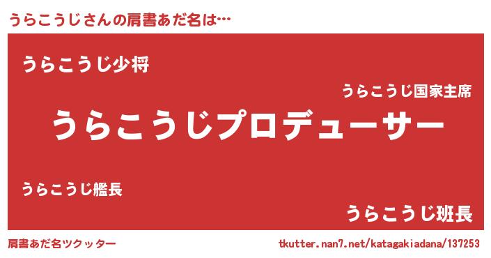 | 男性向けラノベタイトル風あだ名 | 『うらこうじに滅ぼされるだけの簡単なお仕事です』 |