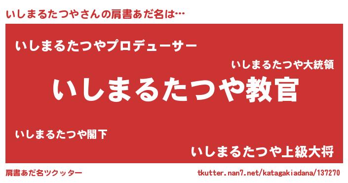 | 男性向けラノベタイトル風あだ名 | 『この素晴らしい世界にいしまるたつやを!』 |