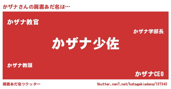 | ヒーロー風カッコイイあだ名 | 『仮面カザダー』『スーパーカザナ』 |