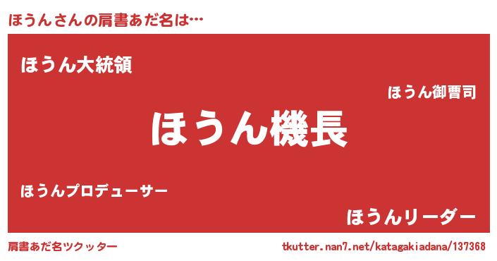 | ヒーロー風カッコイイあだ名 | 『ウルトラほうんマン』『幻影騎士ホウ』 |