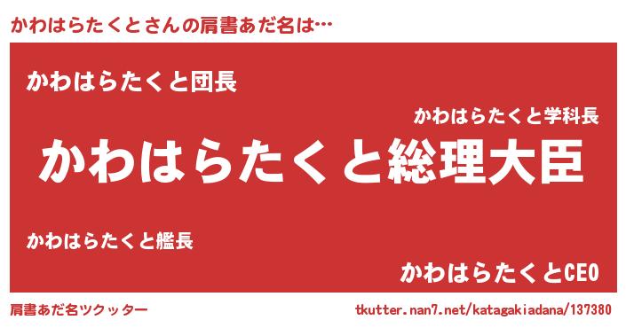 | ファンタジー風あだ名 | 『エターナルカワハラタクトー』 |