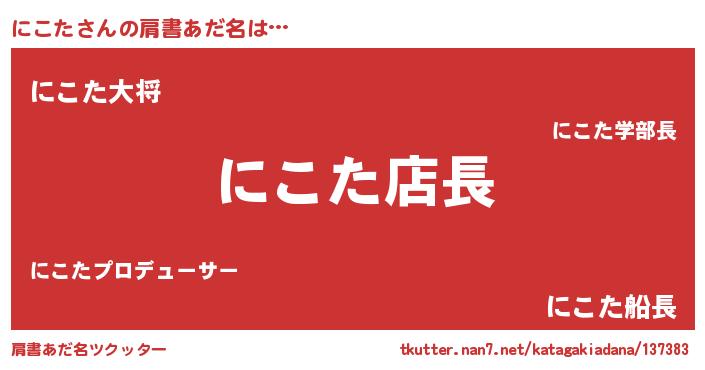 | 男性向けラノベタイトル風あだ名 | 『にこたの憂鬱』『はたらくにこたさま!』 |