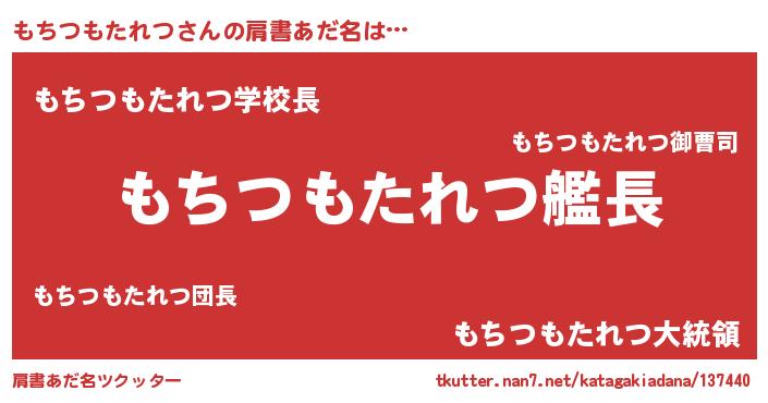 | 男性向けラノベタイトル風あだ名 | 『うちのもちつもたれつが世界を掌握している!』 |