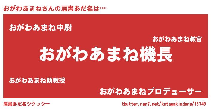 | ヒーロー風カッコイイあだ名 | 『仮面オガダー』『ネオオガワアマネ』 |