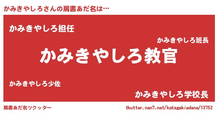 | 男性向けラノベタイトル風あだ名 | 『この素晴らしい世界にかみきやしろを!』 |