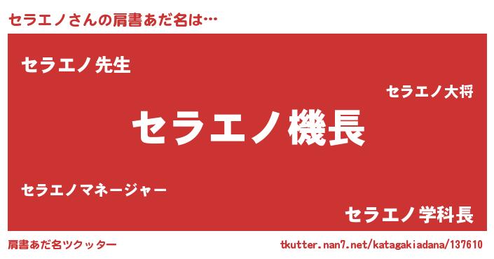 | ヘコむあだ名 | 『セラエノ(震え声)』『セラにー』 |
