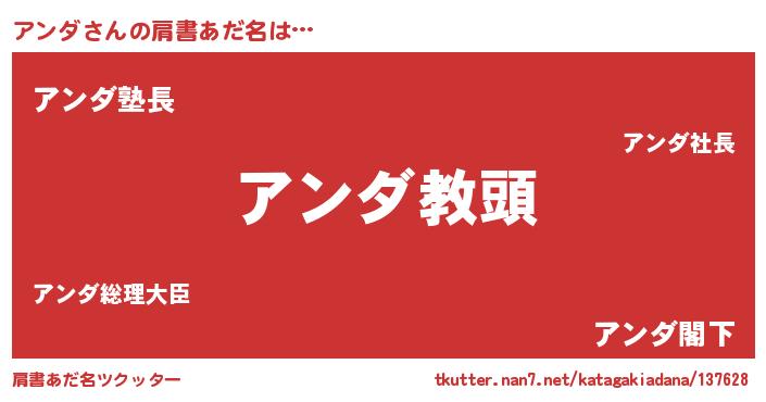 | 意味不明あだ名 | 『永久保存アンダ』『自称アンダ』 |