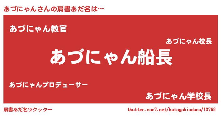 | 女子向けラノベタイトル風あだ名 | 『シンデレラあづにゃん家の靴箱館』 |