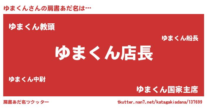 | 意味不明あだ名 | 『ペロリンゆまくん』『永久保存ゆまくん』 |