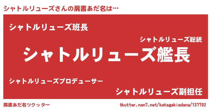 | ヘコむあだ名 | 『シャ太郎』『シャトルリューズ(笑)』 |