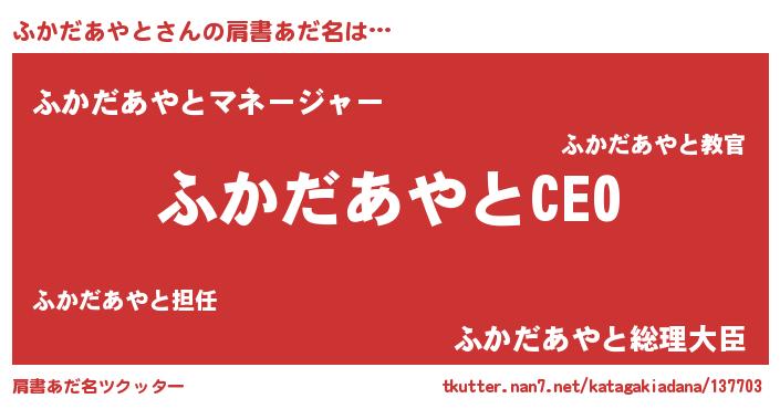 | ヒーロー風カッコイイあだ名 | 『スーパーフカダアヤト』『仮面フカダー』 |