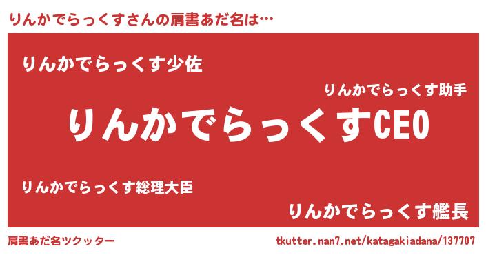 女子向けラノベタイトル風あだ名 | 『誰かこのりんかでらっくすを説明してください! ~契約から始まるウェディング~』 |