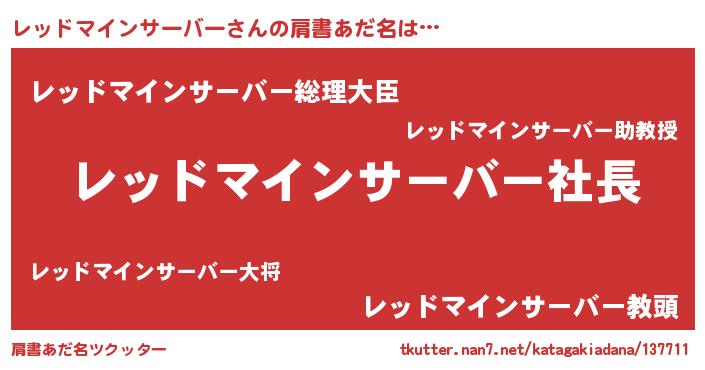 | ヒーロー風カッコイイあだ名 | 『スーパーレッドマインサーバー』 |
