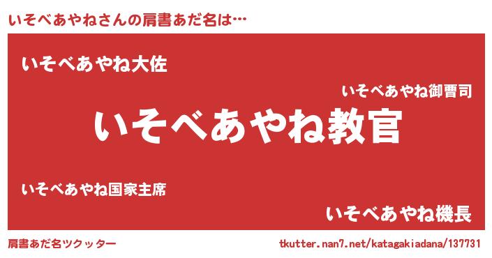 | 恥ずかしいあだ名 | 『プリティーいそべあやね』『いそっちょ』 |