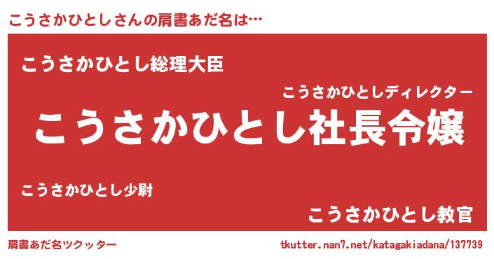 | 女子向けラノベタイトル風あだ名 | 『誰かこのこうさかひとしを説明してください! ~契約から始まるウェディング~』 |