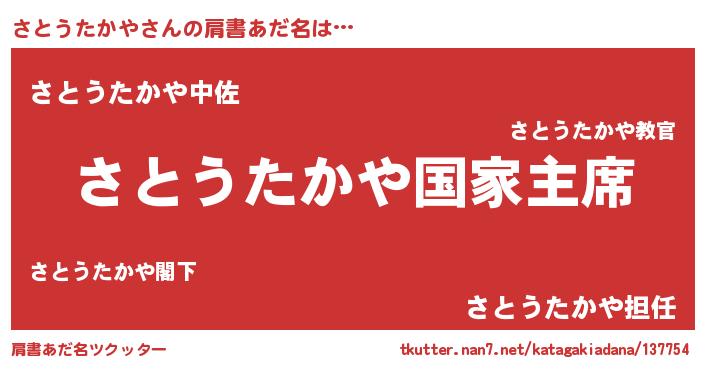 | ファンタジー風あだ名 | 『エターナルサトウタカヤー』 |