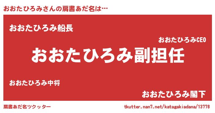 | ヒーロー風カッコイイあだ名 | 『ネオオオタヒロミ』『仮面オオダー』 |